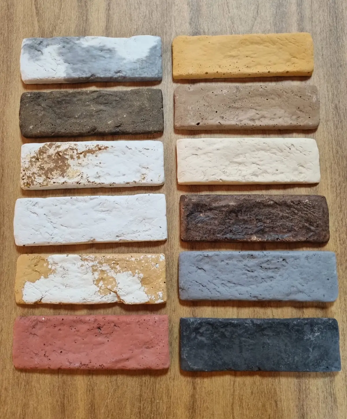 Conjunto de amostras dos revestimentos de tijolinho brick da Kyoto Pedras Decorativas. Escolha as cores de amostra desejadas e pague apenas o frete de entrega.
